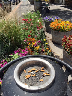 It has the most adorable public ashtray I have ever seen - beautified by a bed of flowers, right there on the pavement of the main street.